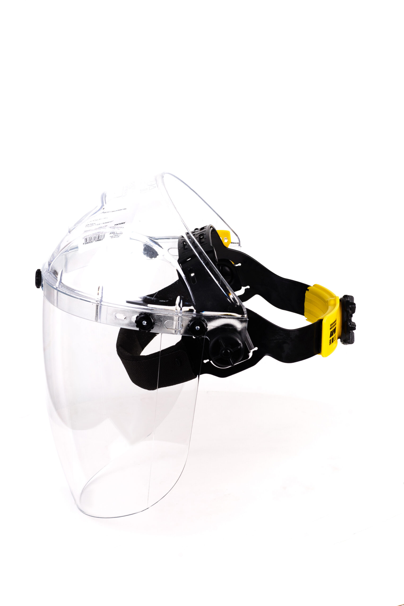 Экран сферической формы с панорамным обзором из незапотевающего ударопрочного и термостойкого поликарбоната со скошенной книзу формой для увеличения эргономики изделия, защита от высокоскоростных летящих частиц с высокоэнергетическим ударом (190 м/с). Прозрачный козырек увеличенного размера из ударопрочного и термостойкого материала имеет специальную площадку для нанесения логотипа.